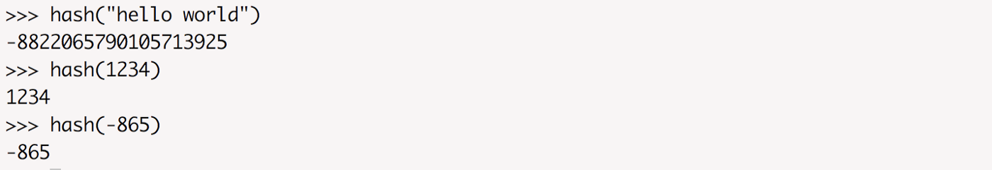 A hash is a unique value assigned to an object using a hash function. If two objects are equal, then their hash will be the same and vice-versa. You can check the hash of any object in python by: