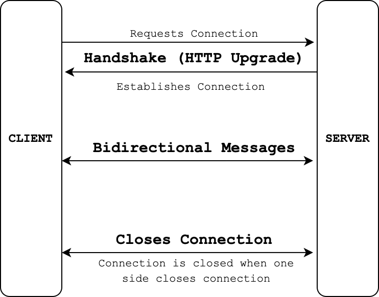 - The websocket connection is now open and the client and server can start emitting messages.